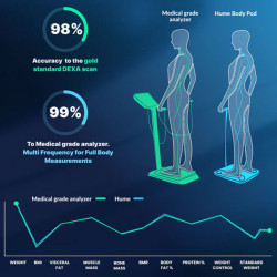 Using state-of-the-art BIA (Bioelectrical Impedance Analysis) technology and integration with the Hume app, it measures 14 key health indicators: