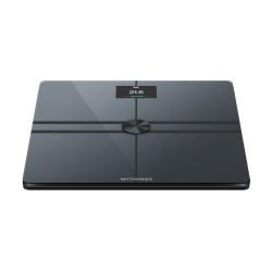 Place the scale on a flat, stable surface to ensure accurate measurements. Step on barefoot so the integrated electrodes can be properly detected. Take measurements under similar conditions, ideally in the morning, to obtain consistent trends over time. Use the Withings app to set a weight goal, manage daily calorie intake and monitor all health measurements. Make sure a 2.4 GHz Wi-Fi connection is available so that data can sync automatically. When you step on the scale, it can also display the local weather forecast and air quality information. If you have an implanted medical device such as a pacemaker, some features may be limited or disabled for safety reasons.
