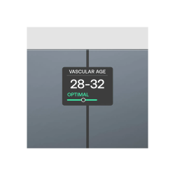 It delivers advanced body composition using 2 frequencies (body fat, muscle, water and bone mass) and tracks key indicators such as standing heart rate, vascular age and the Nerve Health Score.