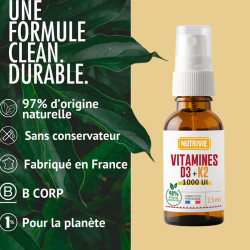 Un espray ultrapráctico para aportar a diario la combinación de Vitamina D3 y K2, esencial para la fijación del calcio y el buen funcionamiento del sistema inmunitario. Un formato nómada, fácil de usar y adecuado para todos los perfiles.